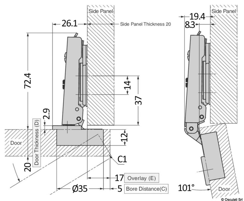 Cerniera in acciaio inox con ammortizzatore in ABS